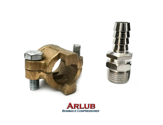 Kit espigão + abraçadeira para mangueira de lava rápido de 1/2" (K070)